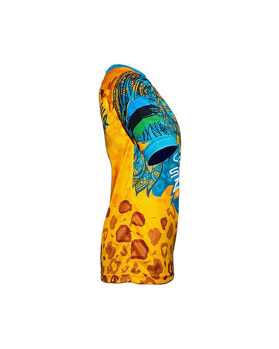 Popular stylish round-necked t-shirt, bright & colourful with lion motif